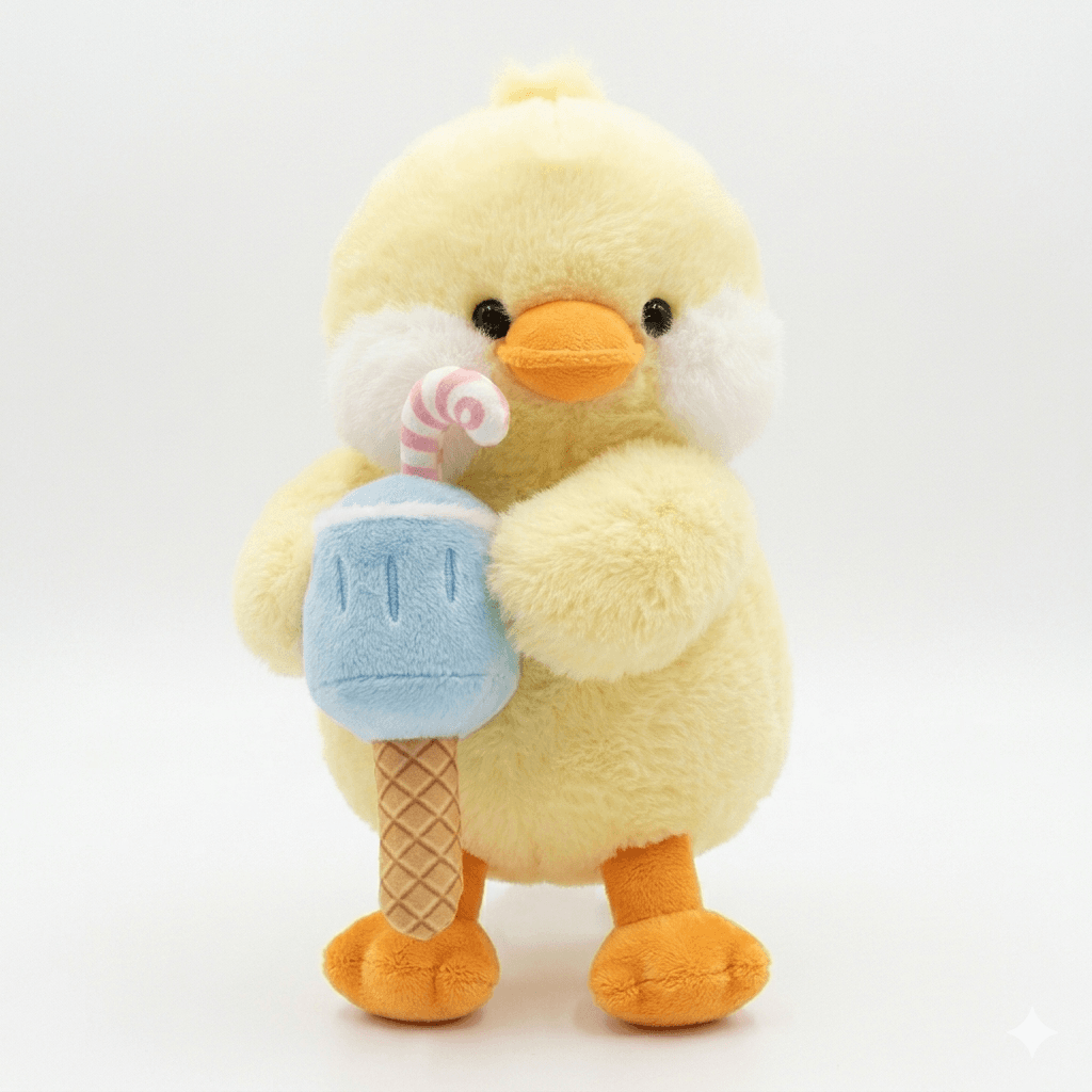 Bring home this adorable yellow duck plush toy that’s guaranteed to melt hearts with its soft fluffy body and cute little ice cream in hand, this toy is perfect for kids who love cuddly companions and fun designs.